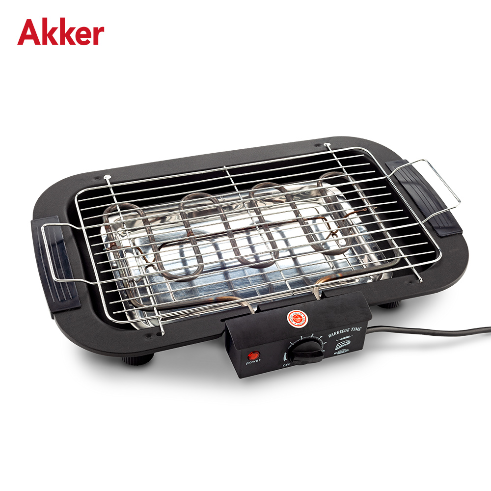 BBQ eléctrico de 1500W. Con luz indicadora de encendido. 3 estados de cocción. Control automático con termostato. Rejilla con 3 niveles de altura. Empaque caja individual. Medidas: 47.5 cm x 29 x 5 cm Sin Marca