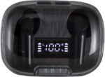 Audífonos Bluethooth. Pantalla digital y tapa transparente. Rango de alcance: 15 metros. Tiempo de reproducción: aprox. 3 horas. Tiempo de Carga: 1 hora Duración de la carga en inactividad: 200 horas. Cable de carga USB tipo C en color blanco para audífonos blancos, y en color negro para la versión en negro. Medidas: 6 x 4,5 x 2,5 mm. Material: Plastico ABS. Versión Bluetooth: 5.1 Capacidad Batería: 30 mAh para cada auricular. Capacidad Batería caja de carga: 250 mAh Presentación: en caja de regalo blanco mate para audífonos blancos y en caja de regalo negro mate para audífonos negros.