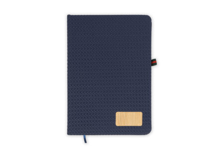 Cuaderno con argollado “doble O” y cierre magnético. Memos adhesivos, 4 juegos de banderas adhesivas en papel de diferentes colores por 25 unidades c/u de colores y bolígrafo de color similar. 60 hojas rayadas de 70 g. Con porta bolígrafo. Tamaño aproximado de las hojas: A6.
