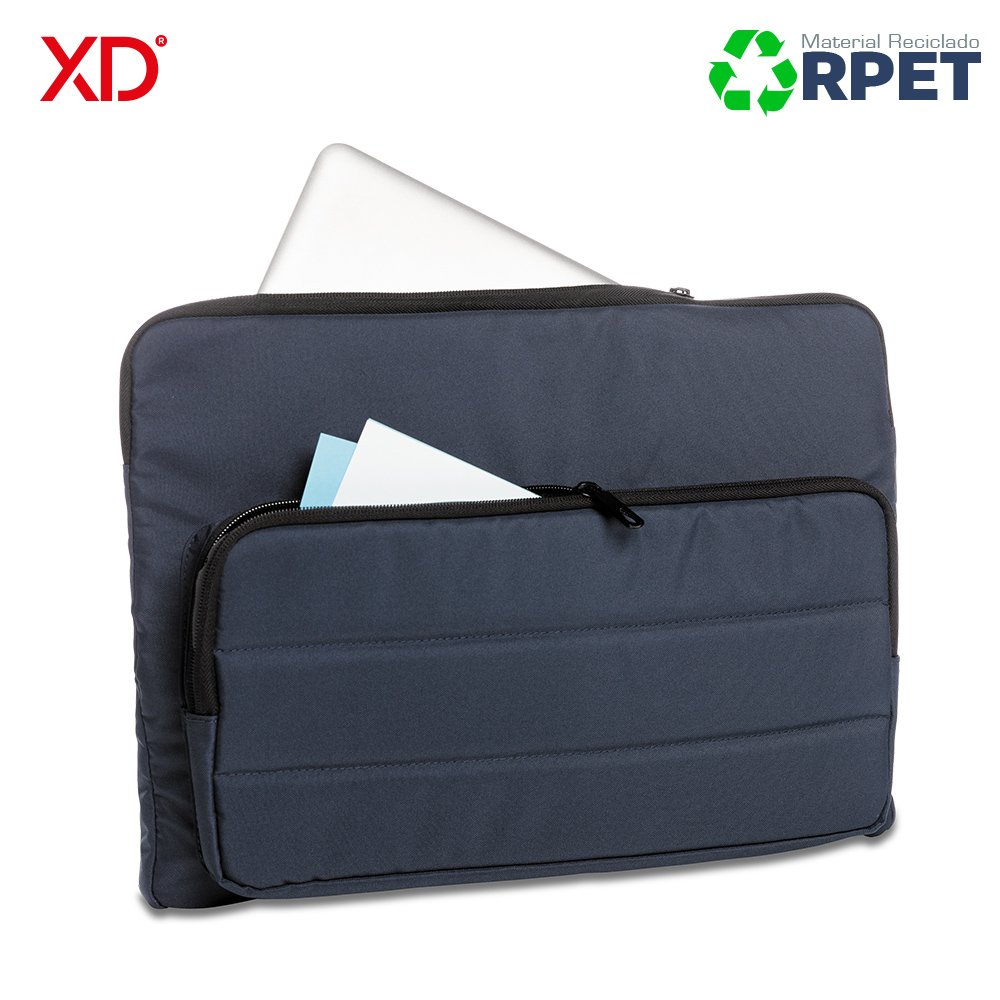 Funda portalaptop acolchada para portátilesde hasta 15.6”. Bolsillo frontal con cremallera, dos bolsillos internos y para bolígrafos. Fabricado con Poliéster 100% reciclado AWARE ™, ahorro de 10 litros de agua y se han reutilizado 16 botellas de plástico durante el proceso de producción. Libre de PVC. Medidas: 28 cm x 2.5 cm 39.5 cm Marca: 8 cm / Screen