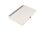 Libreta argollada ‘doble O’ con cubierta dura y hojas elaboradas en material recuperado de cajas Tetra Pak. 70 hojas rayadas de 70 g/m². Tamaño aproximado de la hoja: A5. MATERIAL: Cartón recuperado MEDIDAS: 14(con argolla 15) cm x 21 cm x 1,2 cm. ÁREA DE IMPRESIÓN APROXIMADA: Tampo: 5 cm MARCA: SE SUGIERE: Tampografía variedades hasta 4 tintas EMPAQUE INDIVIDUAL: Cada Pieza en bolsa de Polietileno
