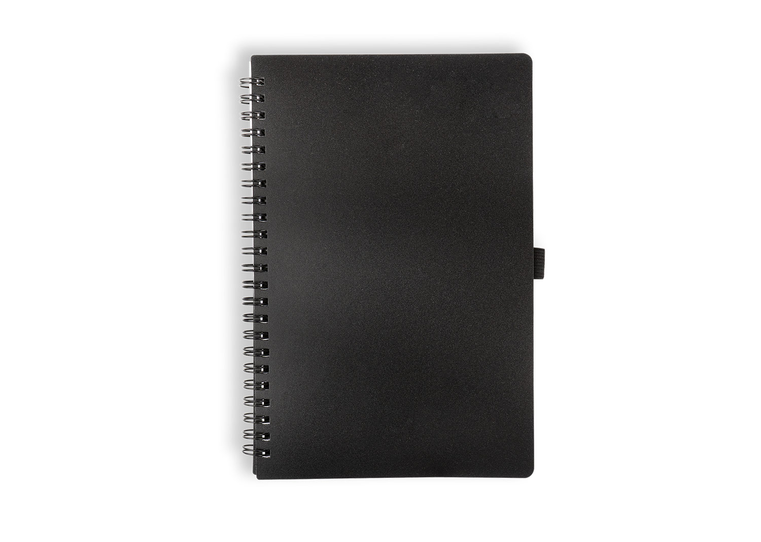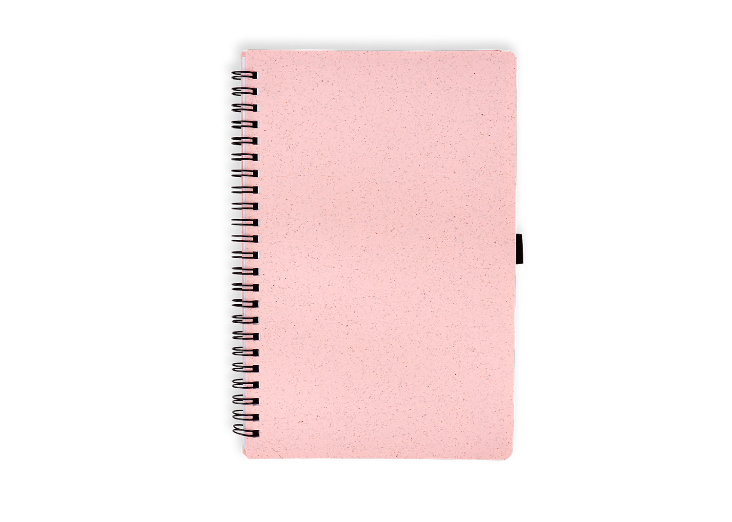 Libreta argollada ‘doble O’ con cubierta en paja de trigo. Contiene 70 hojas rayadas de papel reciclado. Tamaño aproximado de la hoja: A5. MATERIAL: Plástico, Paja de trigo, papel MEDIDAS: 14,6 cm x 21,4 cm x 0,7 cm. ÁREA DE IMPRESIÓN APROXIMADA: Tampo: 6,5 cm MARCA: SE SUGIERE: Tampografía con tratamiento hasta 3 tintas EMPAQUE INDIVIDUAL: Cada pieza en bolsa de polietileno
