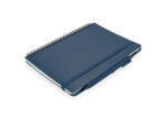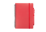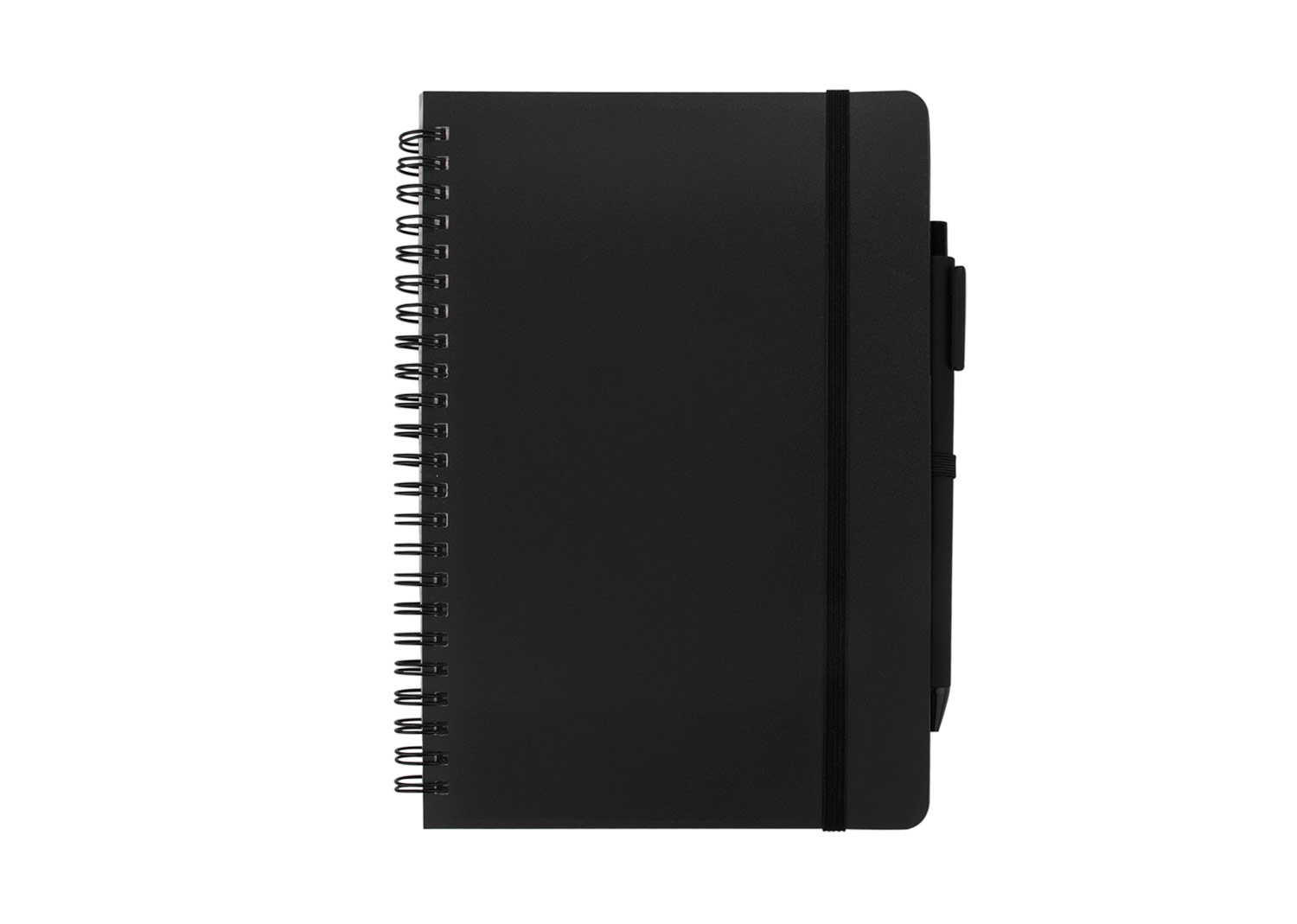 Libreta A5 argollada. Cubierta hecha de plástico recuperado del océano. Banda elástica para cierre. Incluye bolígrafo. Hojas rayadas. MATERIAL: PP Reclidado + Papel 70 grm, MEDIDAS: 16 cm X 21 cm X 0,9 cm ÁREA DE IMPRESIÓN APROXIMADA: Tampo: (7 X 4). Screen: (16 X 10). Tampo Bolígrafo: (7 X 0,7). MARCA: SE SUGIERE: Tampografía con tratamiento de hasta 5 tintas. Screen hasta 5 tintas. EMPAQUE INDIVIDUAL: Caja de 50 unidades sin bolsa