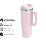 Mug doble pared, sellado al vacío con sorbete. Tecnología Vacuum. Interior en acero 304 y exterior en acero 201. Tapa plástica transparente a rosca con anillo de silicona. Cierre giratorio porta sorbete. Sorbete plástico translucido. Pintura exterior con acabado mate. Mantiene hasta 12 hs la temperatura de las bebidas calientes y 24 hs de las bebidas frías. Medidas: Ø 8,8 cm x 24 cm. Capacidad: 880 ml. Materiales: Acero inoxidable y Polipropileno. Presentación: en caja de regalo kraft.