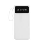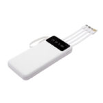 Powerbank multipuerto. Cables de carga incorporados. Entrada: 5V/2A. Salida: 5V/2A. Posee doble entrada tipo C y Micro. 2 salidas USB y 4 cables de carga incorporados: USB, Micro USB, Tipo C y Lightning. Medidas: 14,6 x 6,7 x 2 cm. Capacidad: 10000 mAh. Plástico ABS. Puede cargar hasta 5 dispositivos al mismo tiempo. Display digital con 4 luces led con números. Incluye soporte para celular. Correa de silicona. Presentación en caja de regalo kraft.