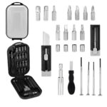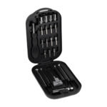 Contiene cuter, 4 desarmadores de relojero, dado extension, 4 dados, desarmador con 10 puntas diferentes e intercambiables. Incluye estuche. INFORMACIÓN BASICA CATEGORÍA: SET DE HERRAMIENTAS MATERIAL: Plastico TAMAÑO: 10 x 17.5 cm