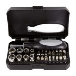 Contiene desarmador con 16 puntas y 8 dados diferentes e intercambiables. Incluye estuche. INFORMACIÓN BASICA CATEGORÍA: SET DE HERRAMIENTAS MATERIAL: Plastico / Acero TAMAÑO: 13.5 x 8 cm