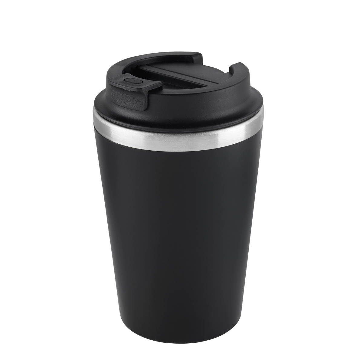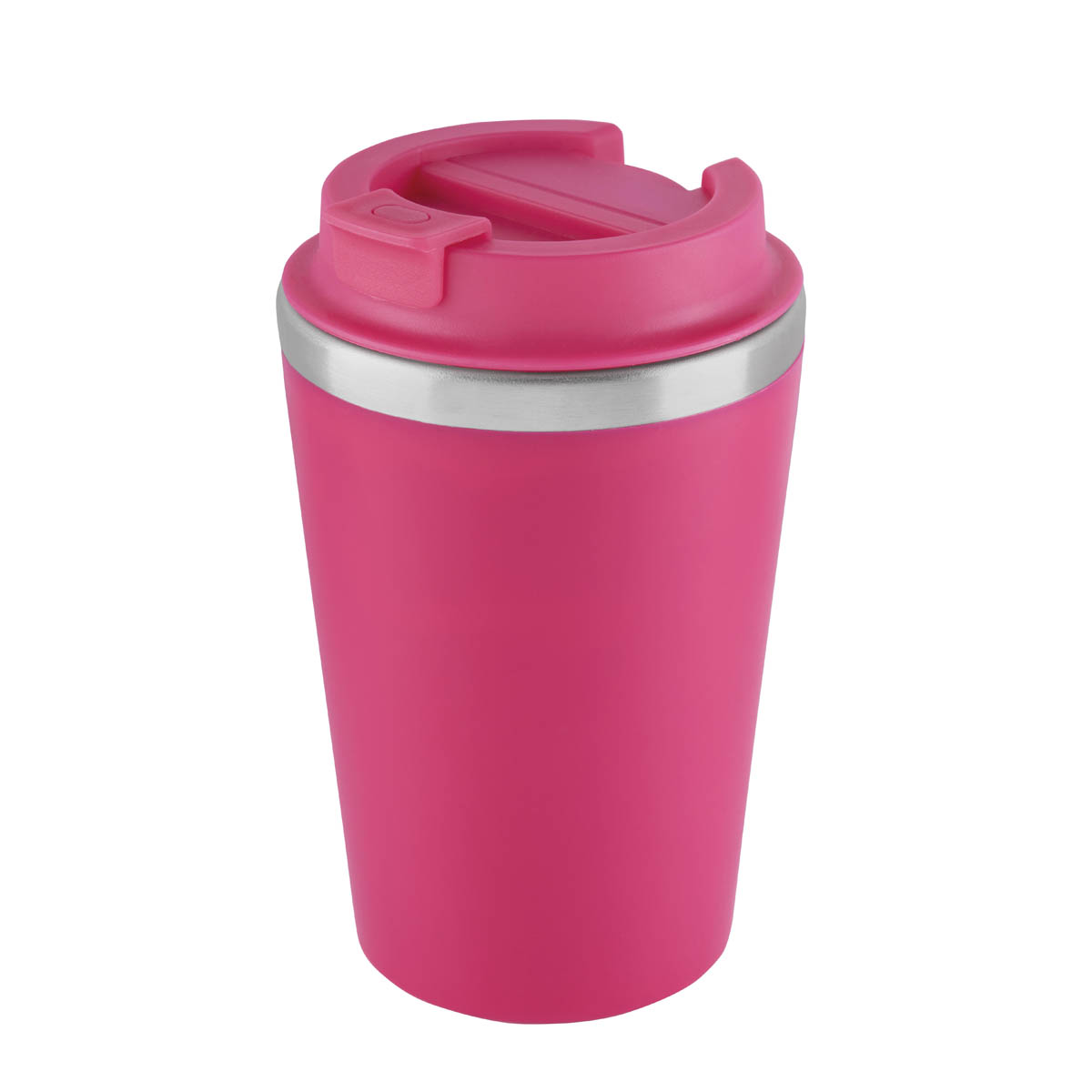 Termo doble pared. Pared interna de acero inoxidable y externa de plastico. Tapa con sistema de rosca que garantiza un cierre hermetico. Sobretapa con sistema push que previene derrames. Su elegante detalle metalico, rompe con la monocromia y anade un toque de distincion. Capacidad de 12 Oz. Base de 7 cm de diametro. Incluye caja individual. INFORMACIÓN BASICA CATEGORÍA: TERMO METALICO MATERIAL: Acero Inoxidable / Plastico TAMAÑO: 8.9 x 15 cm CAPACIDAD: 350 ml